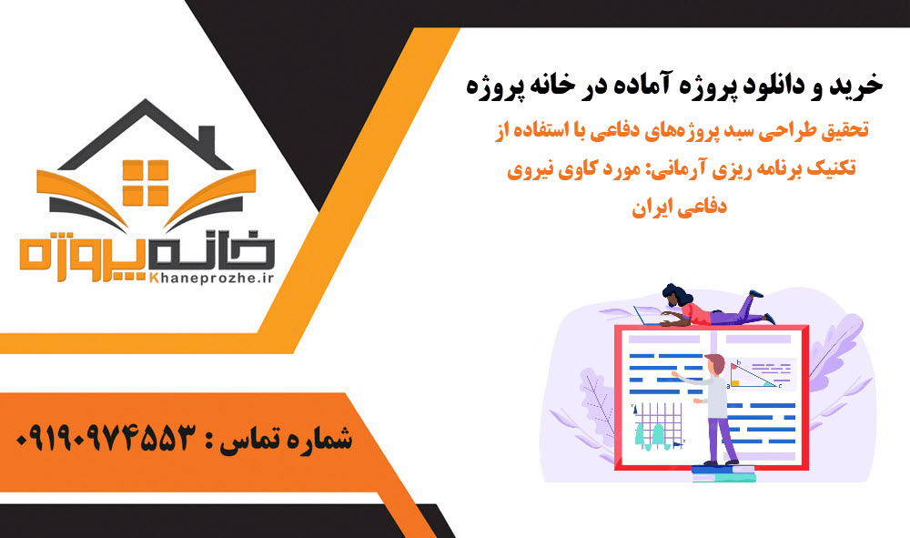 سایت خانه پروژه یکی از بزرگترین سایتهای فروش فایل و پروژه در کشور است که با قرار دادن هزاران پروژه در حوزه ها و رشته های مختلف به مرجعی برای دانشجویان و شرکت های تجاری برای دریافت پروژه های آماده تبدیل شده است.در زیر پروژه ای آماده با موضوع“تحقیق طراحی سبد پروژههای دفاعی با استفاده از تکنیک برنامه ریزی آرمانی: مورد کاوی نیروی دفاعی ایران”برای شما عزیزان قرار داده شده که توضیحات آن را در ادامه میتوانید مشاهده نمایید.