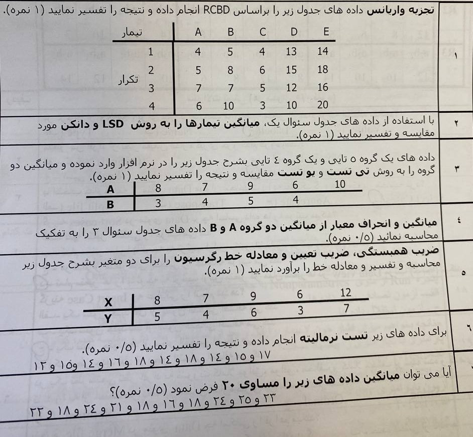 عنوان :دانلود هفت سوال امتحانی در SPSS