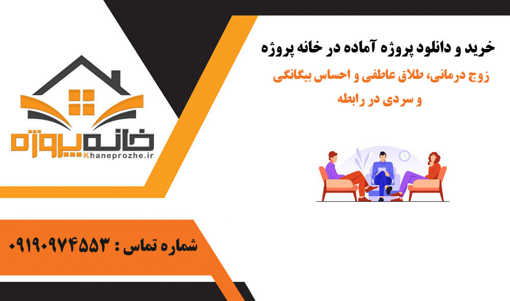 سایت خانه پروژه یکی از بزرگترین سایتهای فروش فایل و پروژه در کشور است که با قرار دادن هزاران پروژه در حوزه ها و رشته های مختلف به مرجعی برای دانشجویان و شرکت های تجاری برای دریافت پروژه های آماده تبدیل شده است.در زیر پروژه ای آماده با موضوع“زوج درمانی، طلاق عاطفی و احساس بیگانگی و سردی در رابطه”برای شما عزیزان قرار داده شده که توضیحات آن را در ادامه میتوانید مشاهده نمایید.