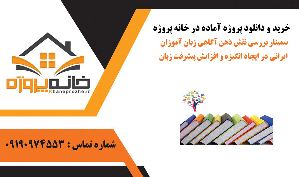 سایت خانه پروژه یکی از بزرگترین سایتهای فروش فایل و پروژه در کشور است که با قرار دادن هزاران پروژه در حوزه ها و رشته های مختلف به مرجعی برای دانشجویان و شرکت های تجاری برای دریافت پروژه های آماده تبدیل شده است.در زیر پروژه ای آماده با موضوع“سمینار بررسی نقش ذهن آگاهی زبان آموزان ایرانی در ایجاد انگیزه و افزایش پیشرفت زبان”برای شما عزیزان قرار داده شده که توضیحات آن را در ادامه میتوانید مشاهده نمایید.