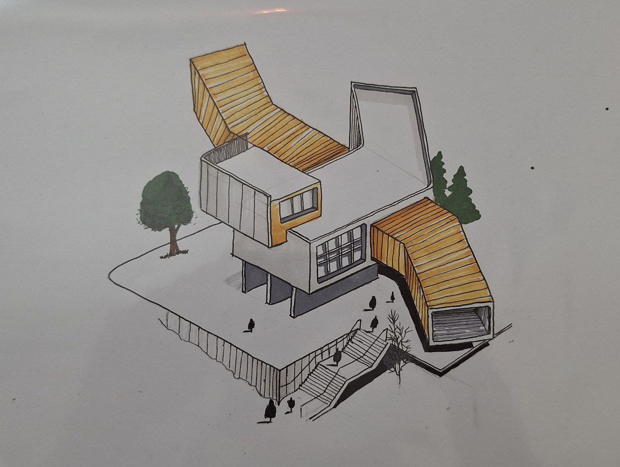مدل‌سازی اقامتگاه مفهومی با سیلوهای مدرن در اسکچاپ
