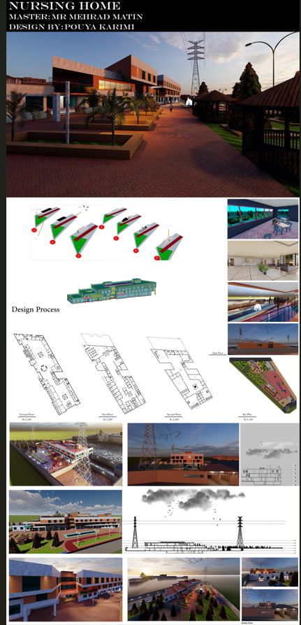 خانه سالمندان با زیر بنای ۵۰۰۰ متر در دو طبقه با کانسپت موجود (حجم) طراحی شده است.