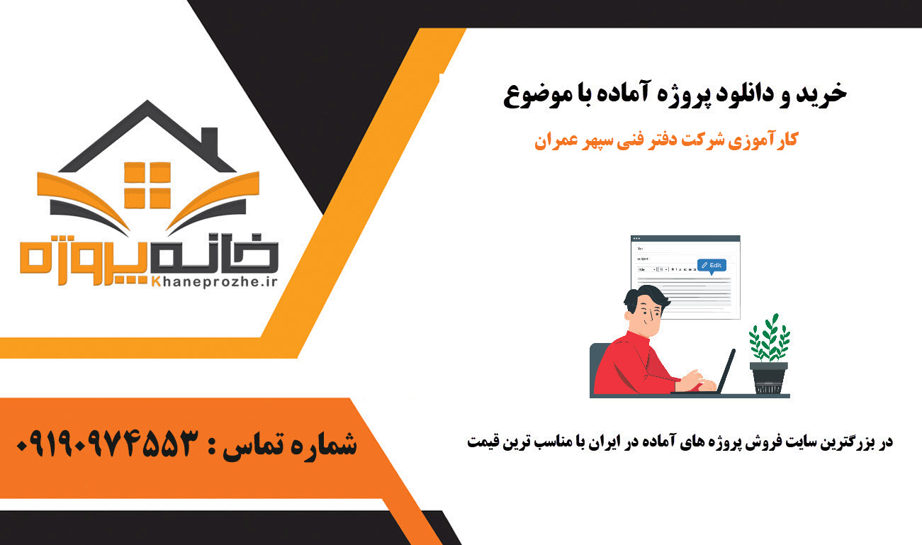 سایت خانه پروژه یکی از بزرگترین سایتهای فروش فایل و پروژه در کشور است که با قرار دادن هزاران پروژه در حوزه ها و رشته های مختلف به مرجعی برای دانشجویان و شرکت های تجاری برای دریافت پروژه های آماده تبدیل شده است.در زیر پروژه ای آماده با موضوع “کارآموزی شرکت دفتر فنی سپهر عمران” برای شما عزیزان قرار داده شده که توضیحات آن را در ادامه میتوانید مشاهده نمایید.